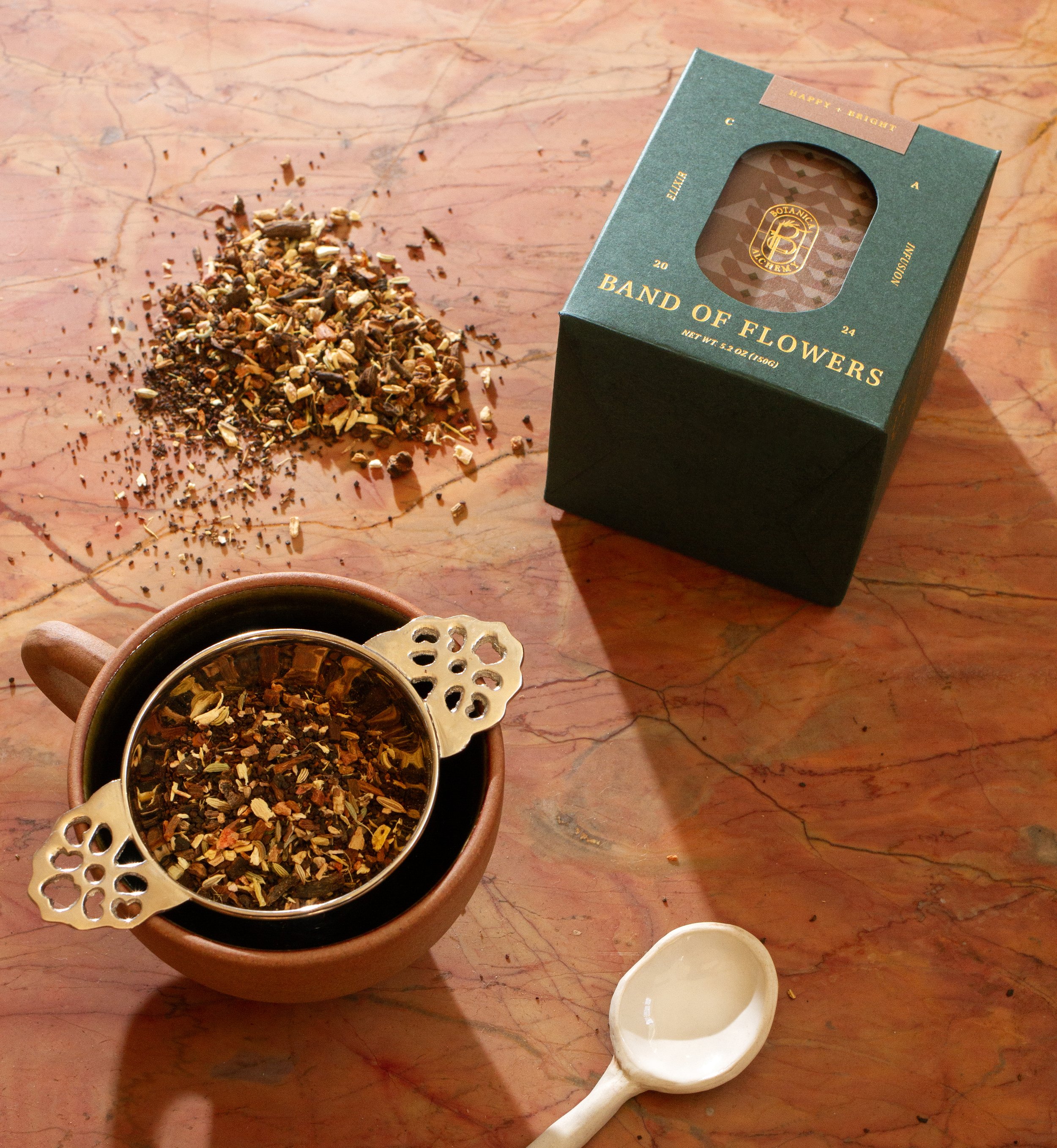 Band of Flowers teas was created as a bridge between the ancient wisdom of Ayurveda and a profound belief that healing ourselves is within our own power. Our meticulously crafted teas are rooted in centuries-old techniques that are meticulously blended to harmonize, heal, and nourish the body and soul.